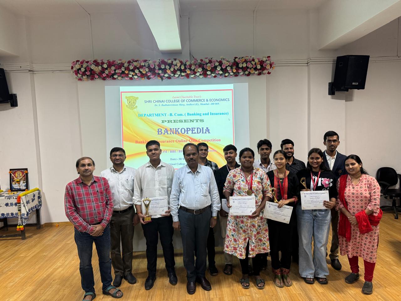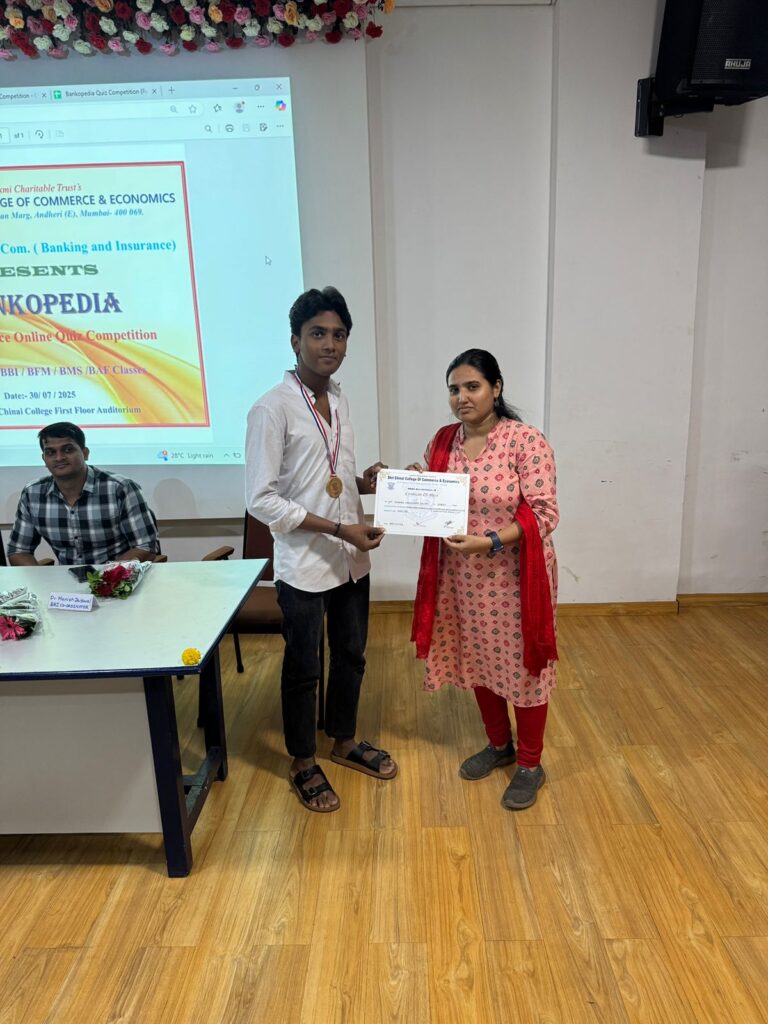 The Department of Bachelor of Commerce (Banking and Insurance), Shri Chinai College of Commerce and Economics, in collaboration with the Internal Quality Assurance Cell (IQAC), successfully organized BANKOPEDIA – an online quiz competition on Banking and Insurance on 30th July, 2025 at 10:00 am in the college auditorium. The event was open to students across all programs including B. Com, BBI, BFM, BMS, and BAF.