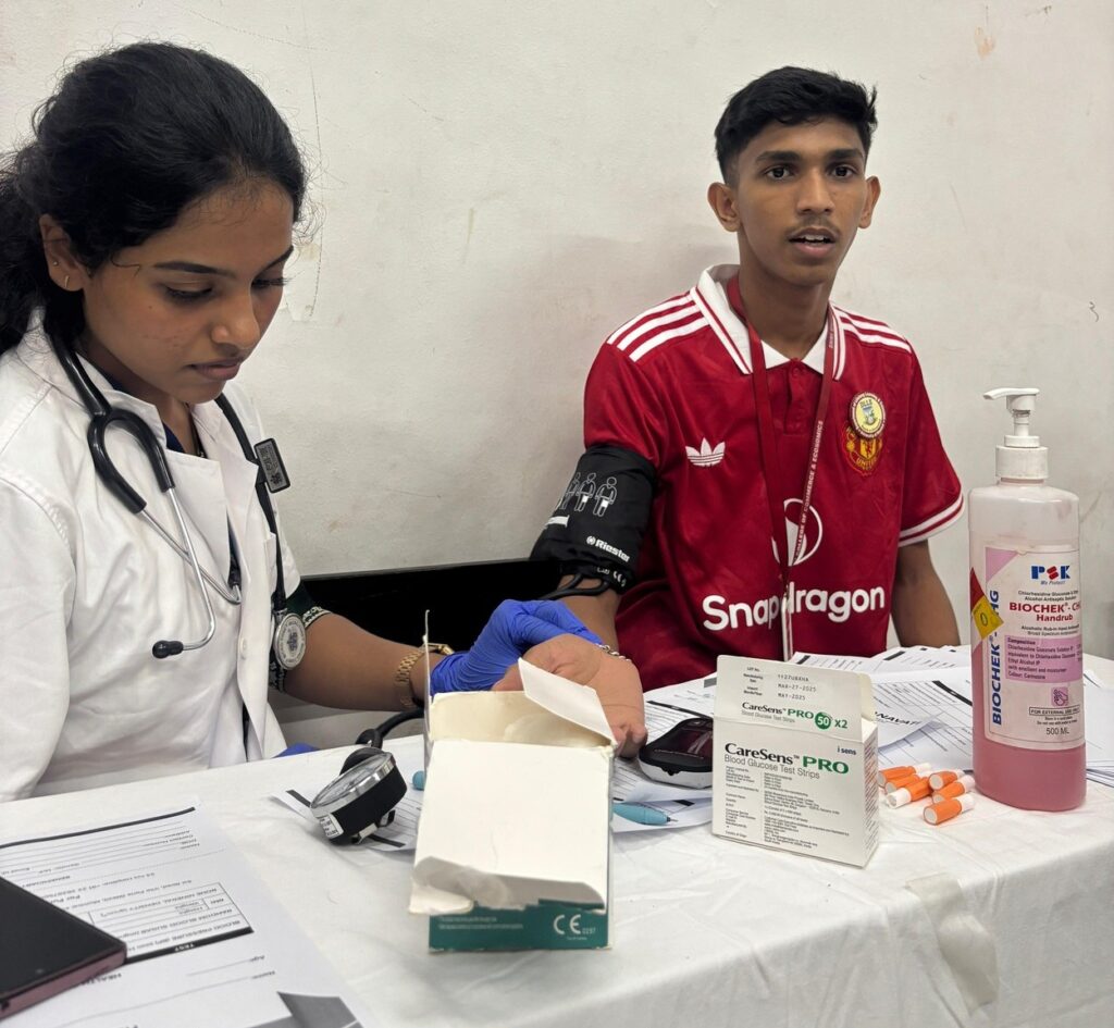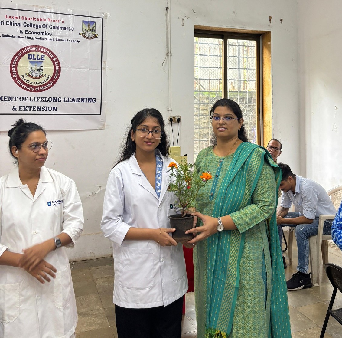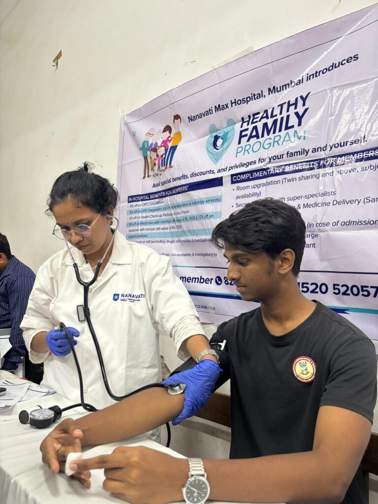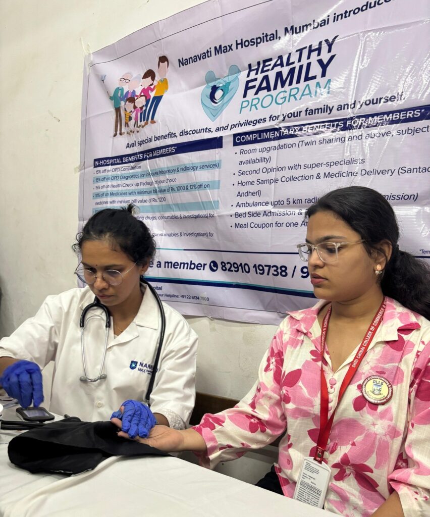 The Department of Lifelong Learning and Extension (DLLE) of Shri Chinai College of Commerce & Economics, in collaboration with IQAC & Nanavati Max Hospital, organized a Free Medical Health Check-up Camp for students and staff members on July 28, 2025. The camp provided services such as general physical examination, blood pressure, BMI check, eye check-up, and basic medical consultation. The event aimed to promote health awareness and preventive healthcare within the campus.