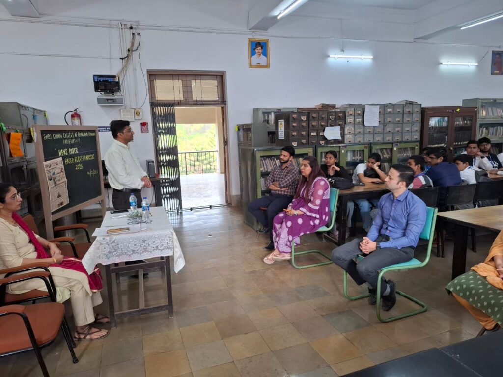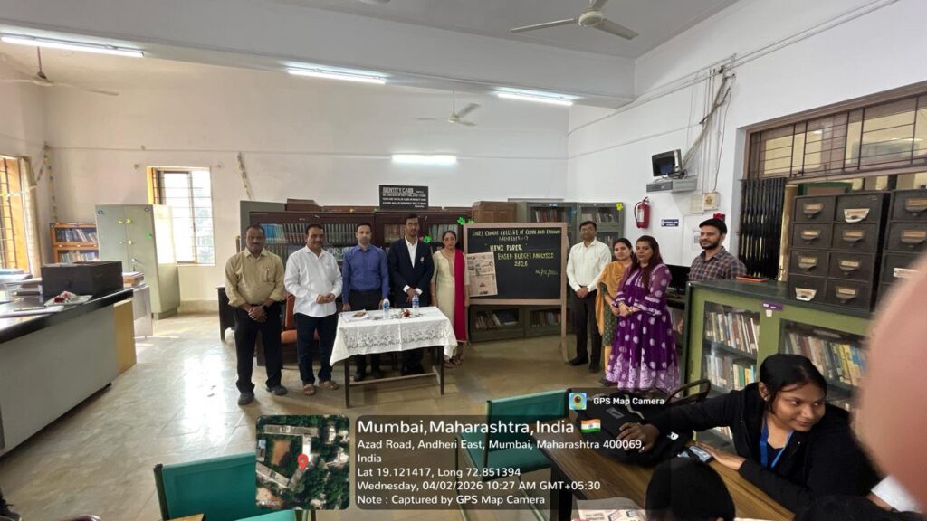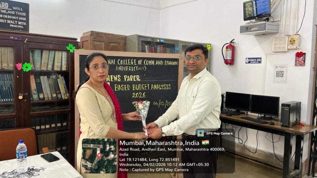 Shri Chinai College of Commerce and Economics, in association with the College Library and the Department of Economics, organised a Newspaper Reading and Analysis Session on Budget Research 2026 on 4th February 2026 in the college library for B. Com, B.B.I, B.F.M, B.A.F, and B.M.S students. The programme began with a welcome address by Prof. Bharat Shirgaonkar, followed by an expert talk by Dr. Chetan Panchal on the significance of the Union Budget 2026 and newspaper reading. The programme concluded with a vote of thanks proposed by Librarian Ms. Victoria Dsouza.