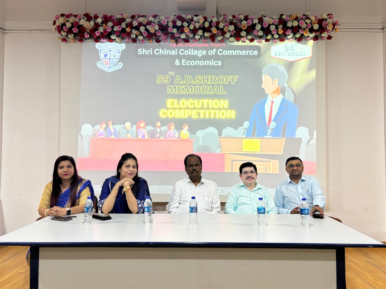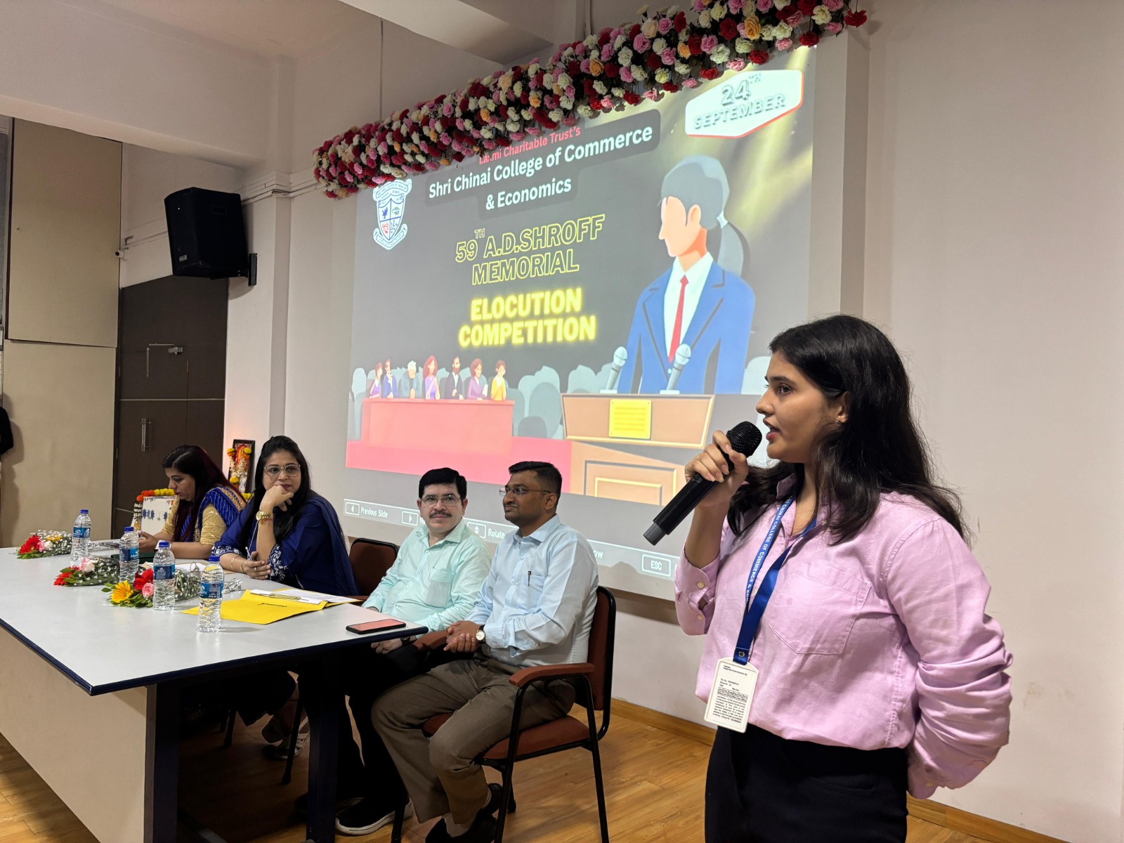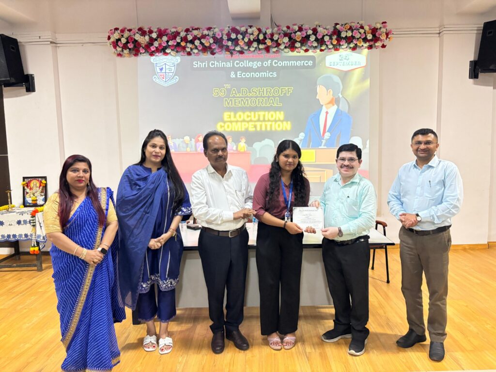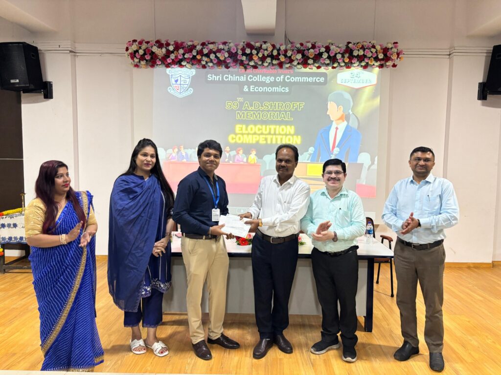 Shri Chinai College of Commerce & economics organized the 59th AD Shroff Memorial Elocution Competition on 24th September 2025, from 10.30 am to 12.00 pm in the First Floor Auditorium. The Forum of Free Enterprise encourages this annual elocution competition and also sponsors the cash prizes and certificates for the same. A panel of two judges from the College namely,
