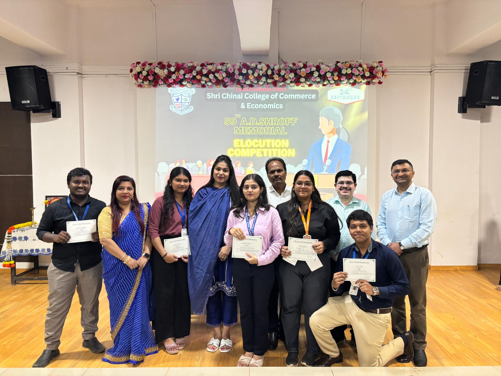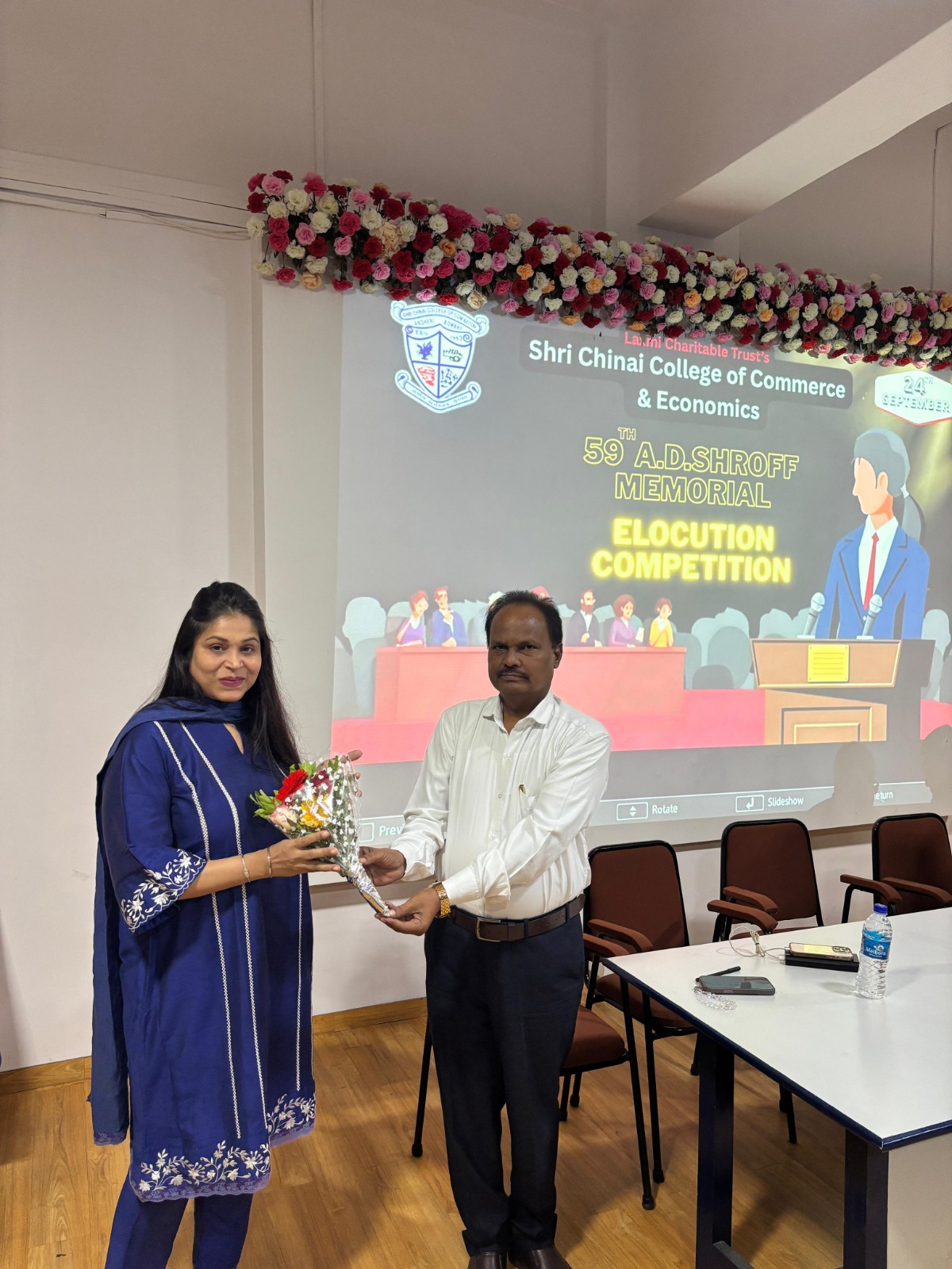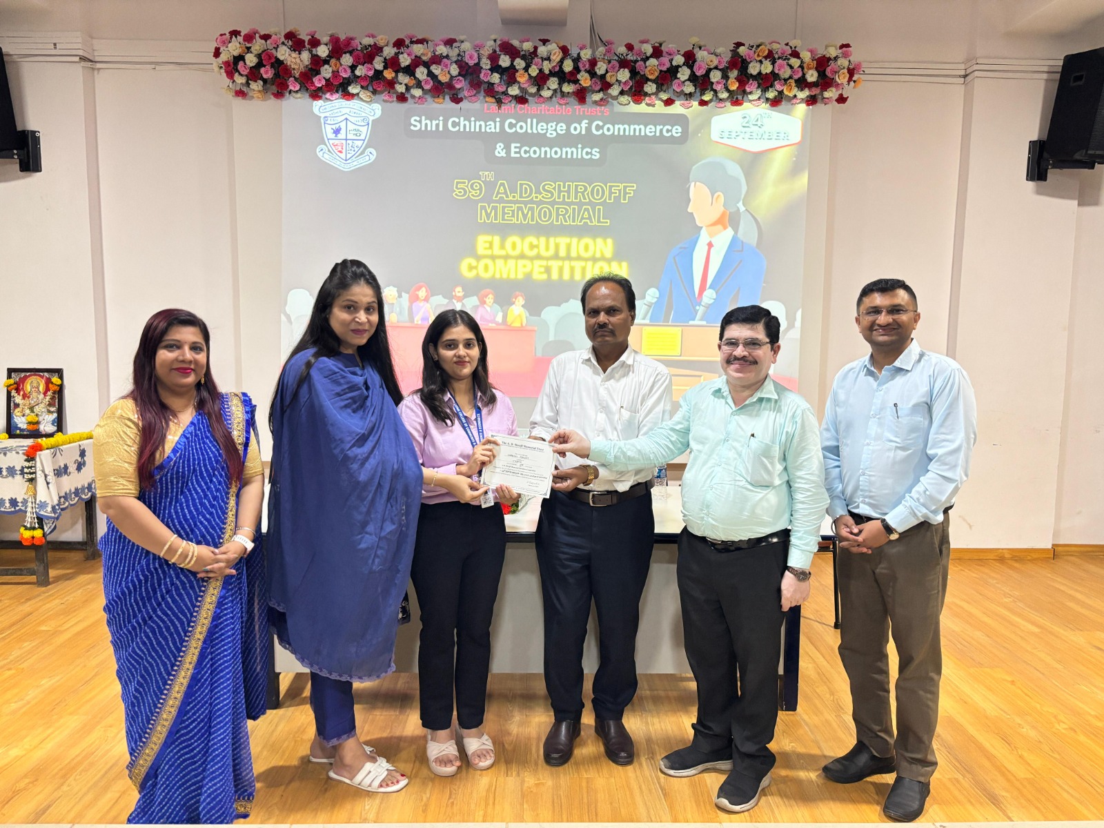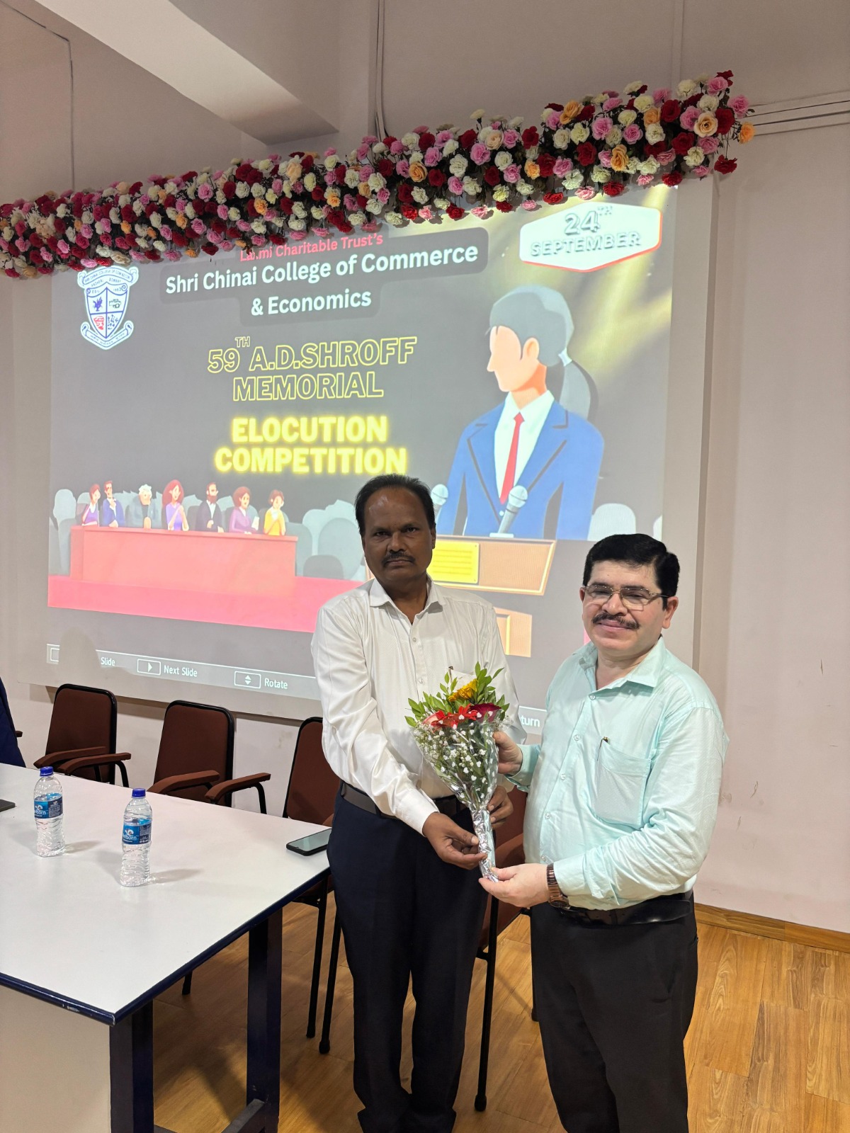 Shri Chinai College of Commerce & economics organized the 59th AD Shroff Memorial Elocution Competition on 24th September 2025, from 10.30 am to 12.00 pm in the First Floor Auditorium. The Forum of Free Enterprise encourages this annual elocution competition and also sponsors the cash prizes and certificates for the same. A panel of two judges from the College namely,